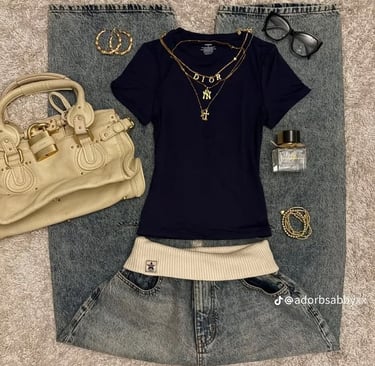 A trendy outfit option that feels especially current is low-waisted baggy jeans paired with a fitted white tee layered under a fitted plaid top. This layered look creates structure while still keeping the relaxed feel of the jeans. Adding cute boots gives the outfit personality and makes it feel intentional instead of basic. This kind of outfit is perfect if you want something that stands out a little more while still feeling comfortable enough to wear all day. It gives that confident, “I didn’t try too hard but still look styled” energy.