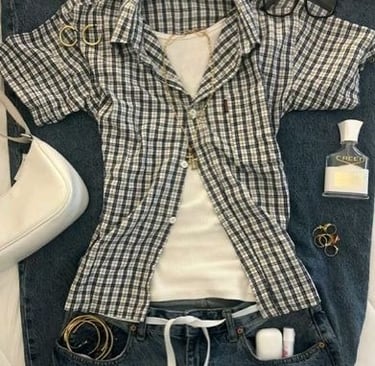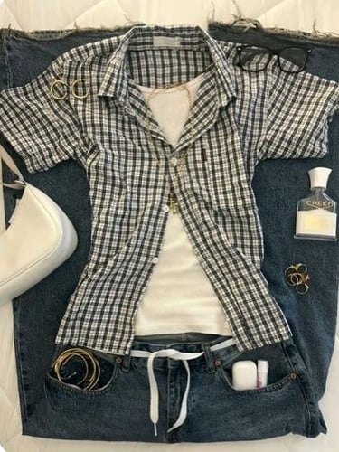 For a slightly more polished look, a preppy outfit combination always feels clean and classic. A collared shirt layered under a sweater creates structure and gives your outfit that effortless academic look that never goes out of style. Pairing this with a nice skirt or jeans keeps the outfit balanced between dressy and casual, making it perfect for the first day. Simple jewelry like a watch, small hoops, or a delicate necklace adds a finishing touch without overpowering the outfit.