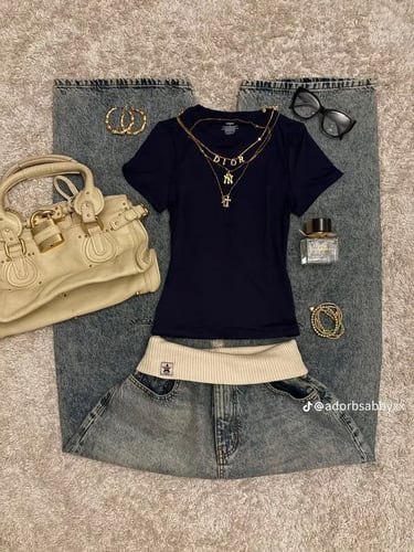 A casual classic outfit is always a safe and confident choice. Wide, baggy jeans paired with a simple black t-shirt create an effortless look that feels relaxed but still put together. If the weather is cooler, swapping the t-shirt for a hoodie instantly makes the outfit feel cozy and practical without losing style. This combination works because the loose fit of the jeans creates a trendy silhouette while the simple top keeps everything balanced. Finish the look with comfortable sneakers and a simple necklace or small earrings for a polished but easy first-day vibe.
