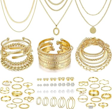 Faxhion 68 Pieces Gold Jewelry Set